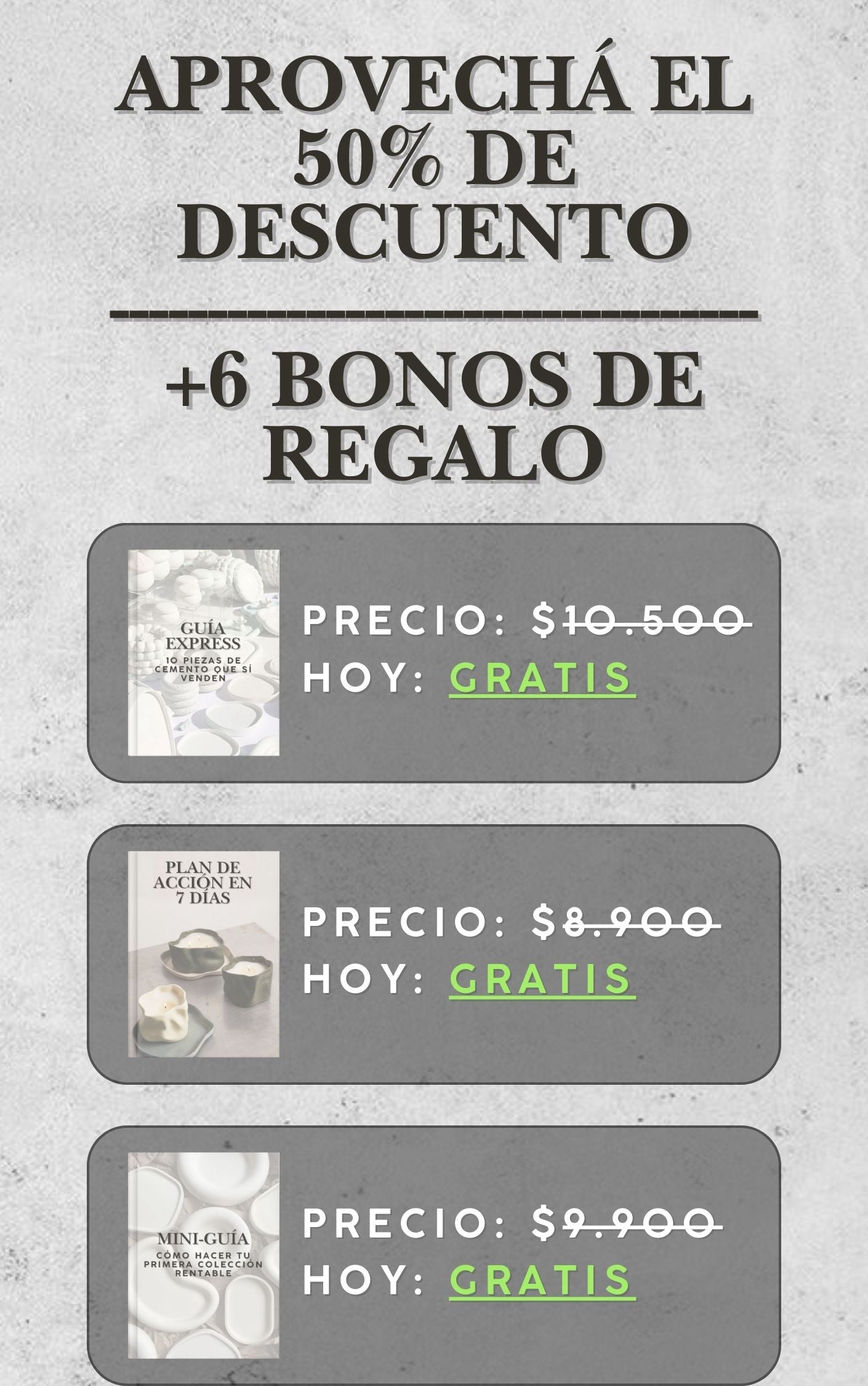 Por eso, si en los próximos 7 días este ebook no te ayuda a ver claro cómo empezar tu emprendimiento en cemento desde casa, te devolvemos tu dinero.